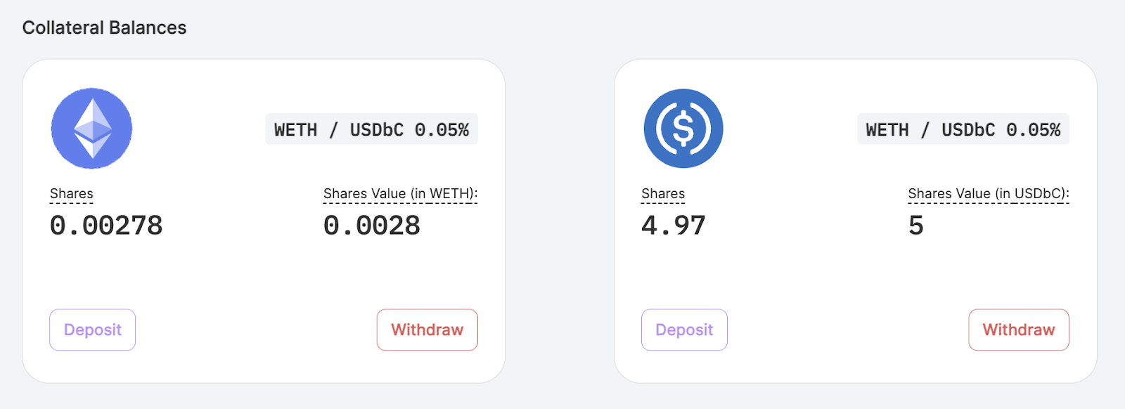 Example: Consider a scenario where a trader deposits 0.0028 WETH and 5 USDbC. The deposited WETH and USDbC is considered as collateral for the trader’s account. The collateral is used in Panoptic to guarantee the trader can pay back any debt or losses from trading options.