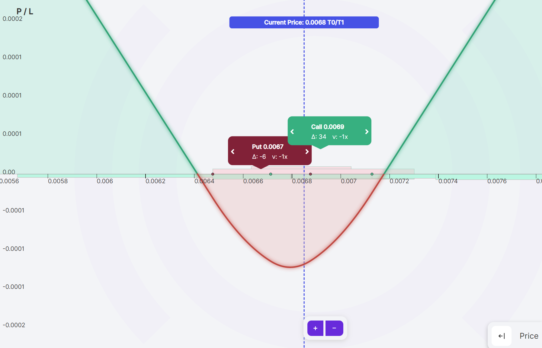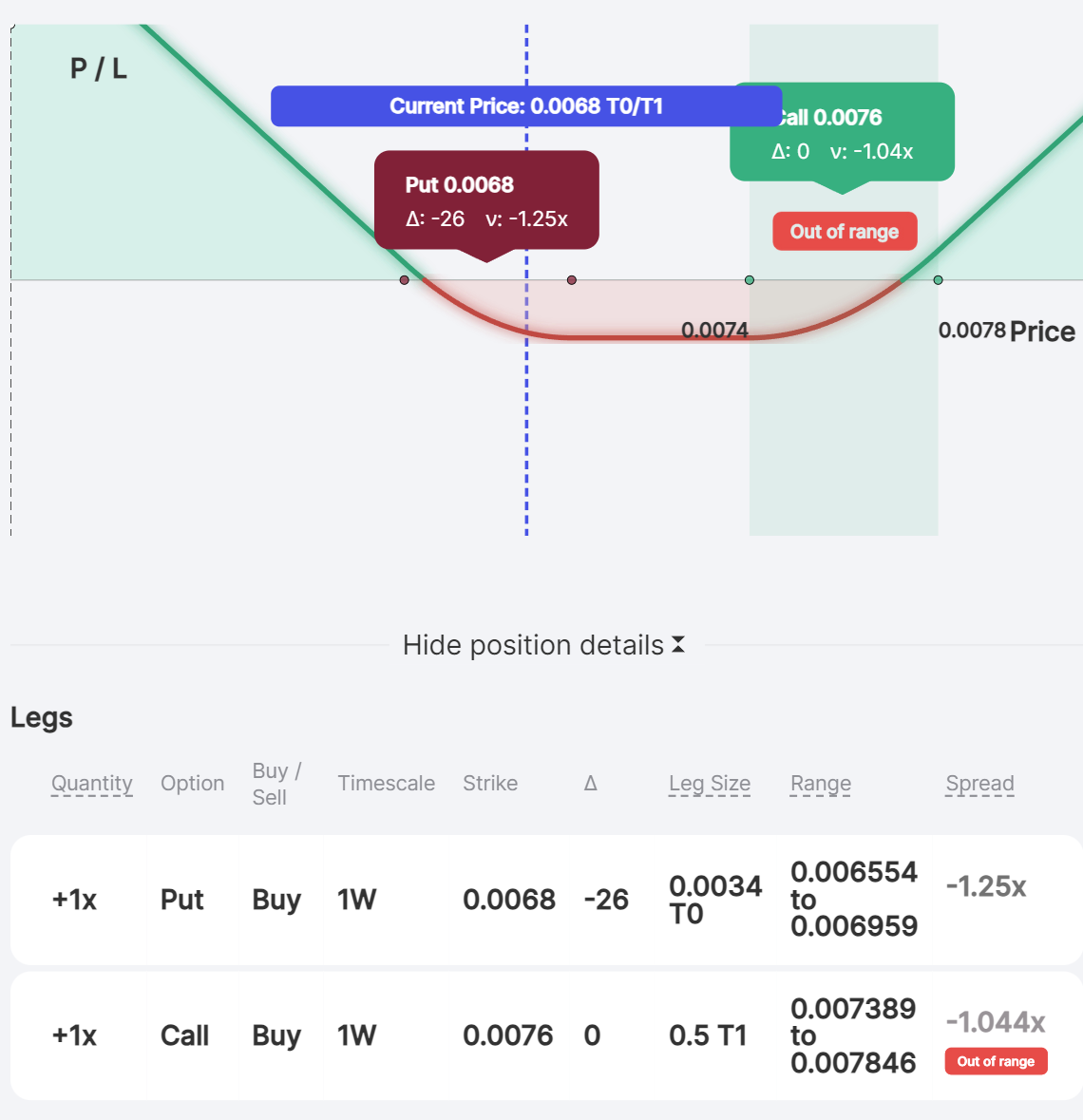 Example: Bob buys one contract of a one-month (1M) 35.60 AVAX put option with a lower price of $33.52 and upper price of $37.80. The width of the option’s price range is $4.28 ($4.28 = $37.80 - $33.52).x